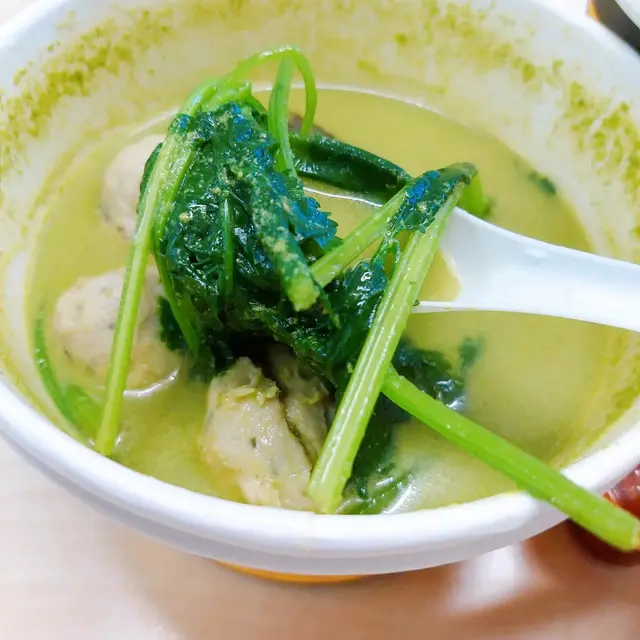 廚師用勁量芫荽攪成蓉再倒湯落濃湯,成碗湯青BB綠色咁,飲落好有芫荽味濃郁!飲湯底仲有好多芫荽呀!香煎炸猪扒好大塊,而且咬落香口兼唔韌,好入味!仲有4粒芫荽香菇貢丸,半隻皮蛋,豆卜,份量都幾多!食兩啖麵飲一啖湯,真係好正!