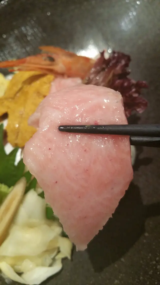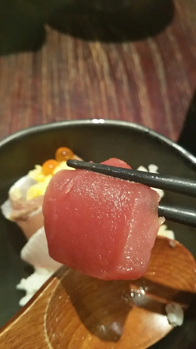 朋友另外叫了個海鮮丼,被肥美的大拖羅吸引,徐徐送入口中,在舌頭上含著溶化的,是幸福的感覺!