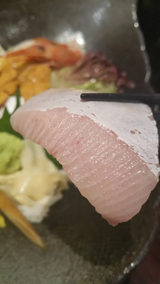 兩層的海鮮丼,上檯一刻不禁嘩一聲!實在擺得幾靚,(又是上網呃like的時候了,笑)中間是吞拿魚,圍邊有捲成花型的火炙間八,中間包著玉子條和三文魚籽,一整塊入口有半溶的魚脂感覺,初時我以為是油甘魚,不過按圖索驥(看memu)應該是間八。漂亮的花好快就成為我肚中的物。