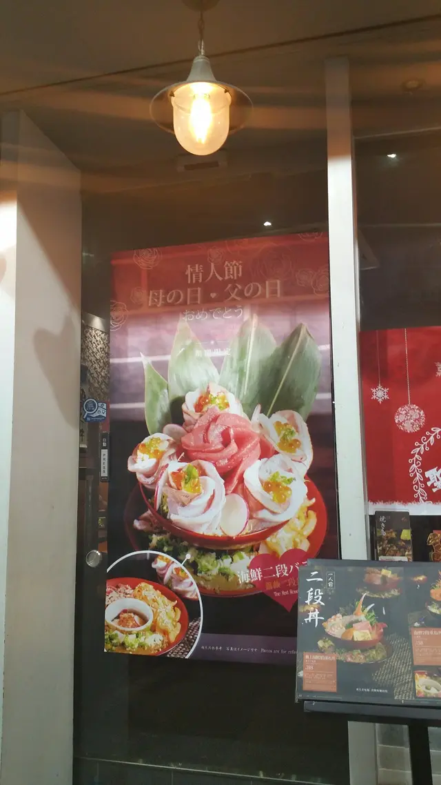 門口貼了大大張海報,介紹薔薇二段丼,疑似是情人節/母親節/父親節佳品,(明正言順「一客三食」?)好吧,我承認「期間限定」4隻字總是特別吸引。馬上就選好了。
