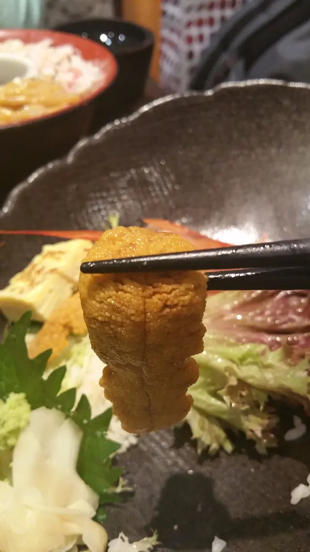 然後是整塊的海膽,結構完整不鬆散,入口鮮美濃厚。帆立貝亦很大很肥美。不得不說,這間海鮮用料頗佳,這個丼的價錢比某大連鎖丼飯店吃到的實在好太多!CP值抵讚!
