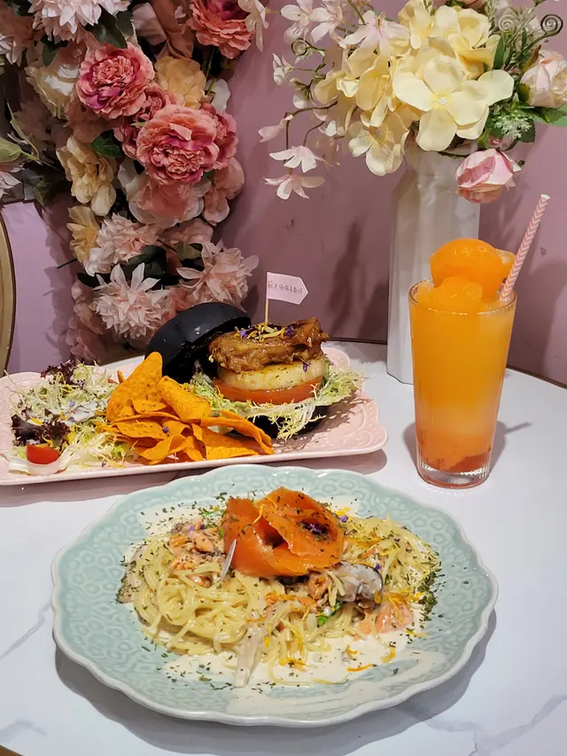 餐廳內好多打卡位,每個角落都有唔同嘅花花主題,仲有啲頭飾同裝飾等等比你同朋友或另一半慶祝嘅時候打卡影相。