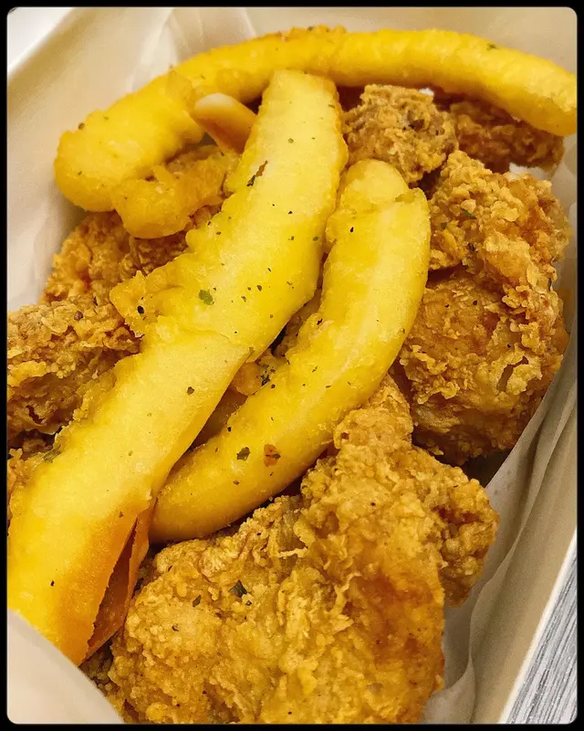 見到$𝟻𝟻已經有𝟽件炸雞當然要一試!每件炸雞份量有半隻手掌心大~今次只係叫咗淨炸雞~其實大家可以+$要埋其他醬汁~外賣返到屋企食嘅炸雞都預咗會有啲硬同無咁𝚓𝚞𝚒𝚌𝚢~不過雞肉都好入味👍🏻用返氣炸鍋翻炸就𝙾𝚔啦💁🏻♀️