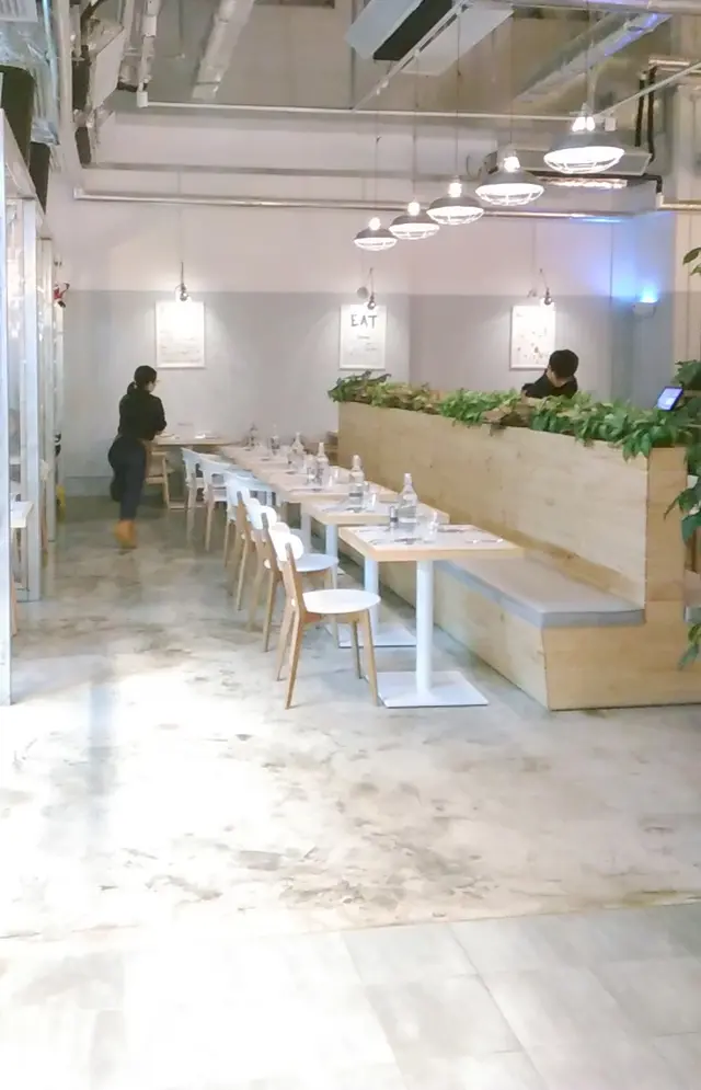 之前和朋友去了平時少去的荃灣,發覺該區真是發展十分迅速,不消數月又為筆者帶來了新驚喜,筆者二人由地鐵站沿路行去愉景新城, 在途中赫然發現一個有趣的名字---8咪半,原來前身是中國染 廠大廈,經改裝翻新後變身成為商場,入内發現裝修新簇店舖不是很 多,大都是還在裝修未開業階段,現時以食市餐廳居多,落到地下,發現了一間裝潢頗具特色的餐廳,樓底很高環境舒適,我倆都深深被裡面的悠閒感所吸引,決定入内試下新店。