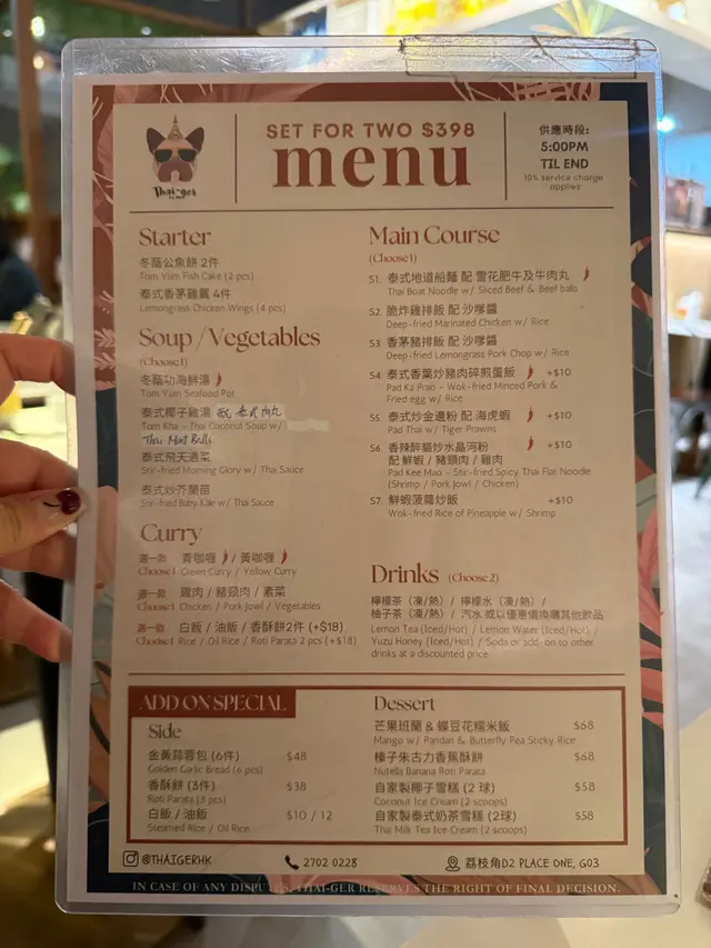 同閏蜜去左位於荔枝角隱世泰式文青小店~Thai-ger食晚飯,餐廳環境有別一般泰國餐廳,遠處見到大大個老虎狗招牌,好搶眼,餐廳充滿悠閑渡假Feel,而且仲係寵物友善餐廳,設有戶外座位,啱晒帶埋毛孩一齊嚟 chill!仲有戶外位置,可以Chill 住食Chill 住傾,我仲見到有好多客人都帶埋蛋糕嚟慶祝生日,好有氣氛💓係朋友閏蜜飯局及家庭聚會好地方!
