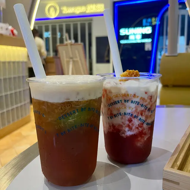 手打香檸茶香味好濃郁,一路食一路飲覺得好清爽同解膩~草莓鮮奶就真係有粒粒士多啤梨肉🍓不過味道就偏甜啲