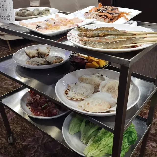 頭先等緊小籠包嘅時候,旁邊已經放滿一層層海鮮同菜蔬肉類,視覺好豐富~喺食小籠包嘅同時,店員又放左啲海蝦去蒸喇。
