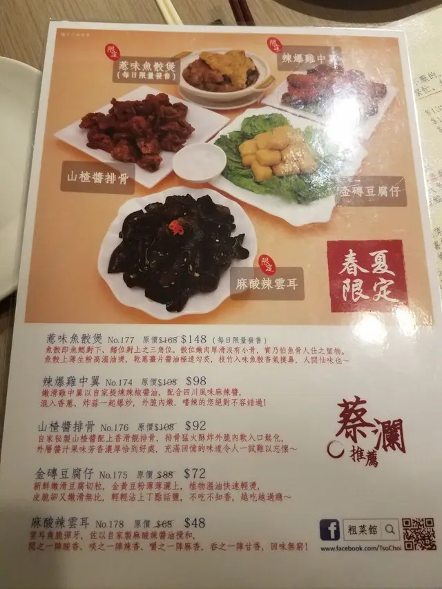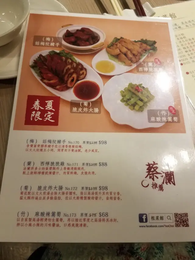 門口右邊竪立了一個易拉架,介紹了九款春夏限定小菜,同樣用了「蔡瀾推薦」招徠。