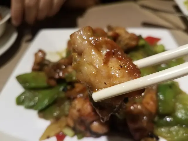 經過泡油、再爆炒,魚肉有點過熟,本應腍滑的魚腩變得有啲粗嚡,不過最大問題卻是魚腩的切件方法。起初以為好像打邊爐的切條鯇魚腩,每件只有一兩條直長魚腩骨,很易食;但原來用了橫向切法,鯇魚腩切成一塊塊,搞到每塊有幾條短魚骨、甚至碎骨,而且還包含了粗嚡、多細骨的魚背肉,有啲失望。