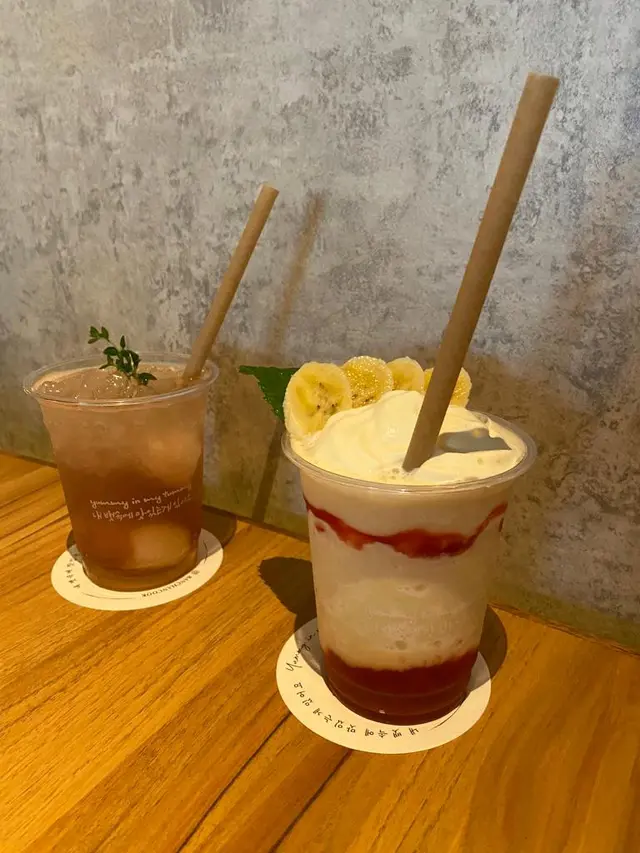 飲品:夏至士多啤梨香蕉奶昔,荔枝梳打