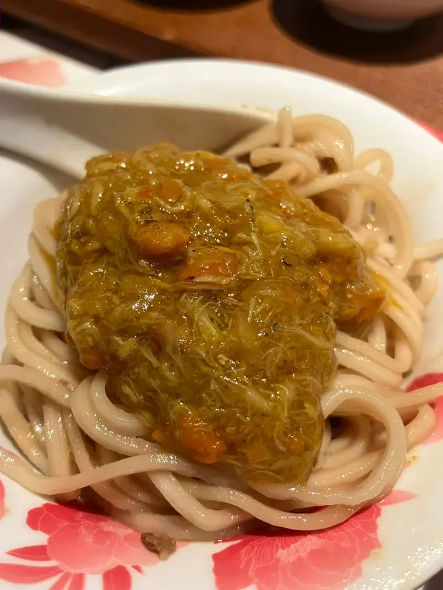 🌟 隱藏食法:蟹粉多到食唔晒?我哋靈機一動... 將剩餘嘅蟹粉醬攞去撈擔擔麵!🤩原本溫和嘅擔擔麵瞬間升級成為「至尊蟹粉撈麵」,每條麵都掛滿濃稠蟹粉,鮮味爆棚,簡直係邪惡級美味!
