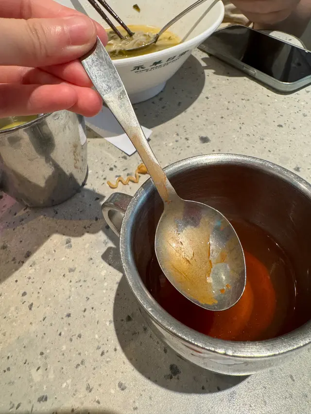 衛生好差 非常嘔心的一餐飯 ssy007等级12024-08-172K 浏览 关注 去呢間茶餐廳食飯 飲品點了熱檸茶和熱檸水 結果發現熱檸茶入面的匙羹非常污糟!!!根本沒有清潔。匙羹上有疑似凝結奶茶的污跡 非常非常嘔心 嚴重懷疑根本沒洗碗清潔餐具 是其他人用過的匙羹!!非常嘔心Ordered a hot lemon tea in this restaurant and found that the spoon in the lemon tea was so dirty! See the pictures below. The spoon was full of stain, looks like the stain of milk tea. Obviously the spoon was not clean. So disgusting 1以上食记乃用户个人意见 , 并不代表OpenRice之观点。赞好分享衛生好差 非常嘔心的一餐飯 永華日常 (利東街) https://s.openrice.com/QrLT07E1L00检举 张贴 评分1味道1环境1服务1卫生1抵食用餐途径堂食