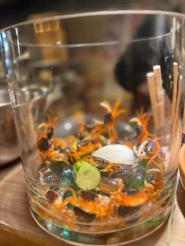 看見澤蟹爬爬下好得意 非常細小 炸佢食真係好殘忍 不過個味道好濃 蟹香沾滿了味蕾 但同時要提防 蟹會㓤到口腔 要小心食