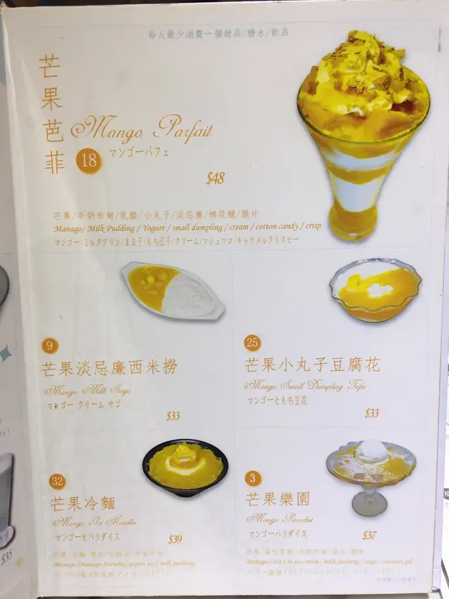 餐牌有中式同西式糖水,西式既糖水都幾特別,款式多樣,大把選擇。不過中式甜品比較遜色,所以如果叫既話,都係叫返西式既穩陣d。