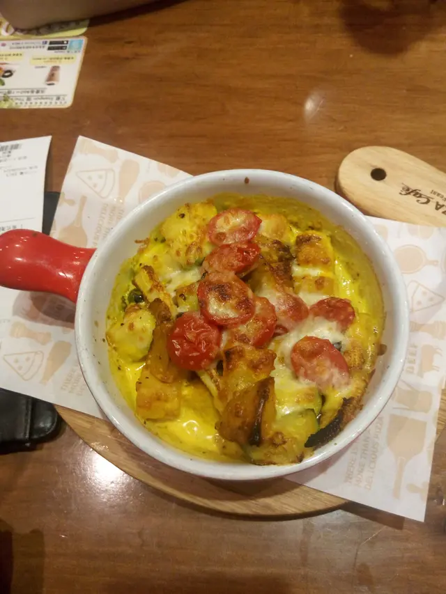 而個叫咖哩焗四蔬。有番茄,薯仔,南瓜,西蘭花,棷菜花。
