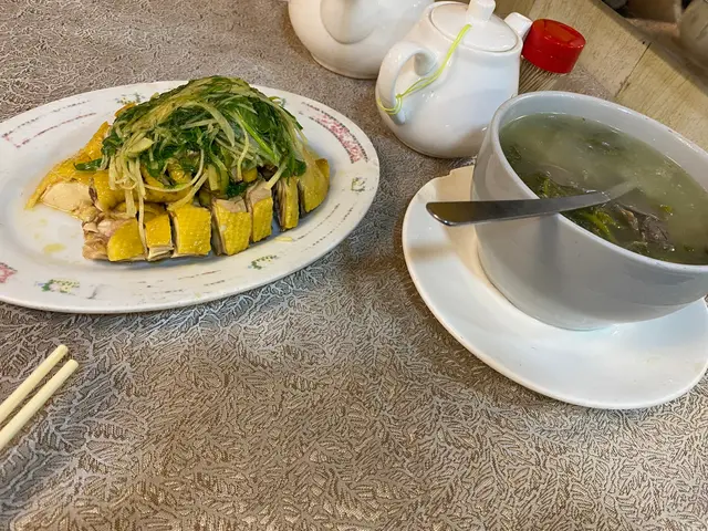 西洋菜鮮陳腎湯味道都可以,略為歉多咗味精。霸王雞雞肉夠嫩夠滑,有雞味。