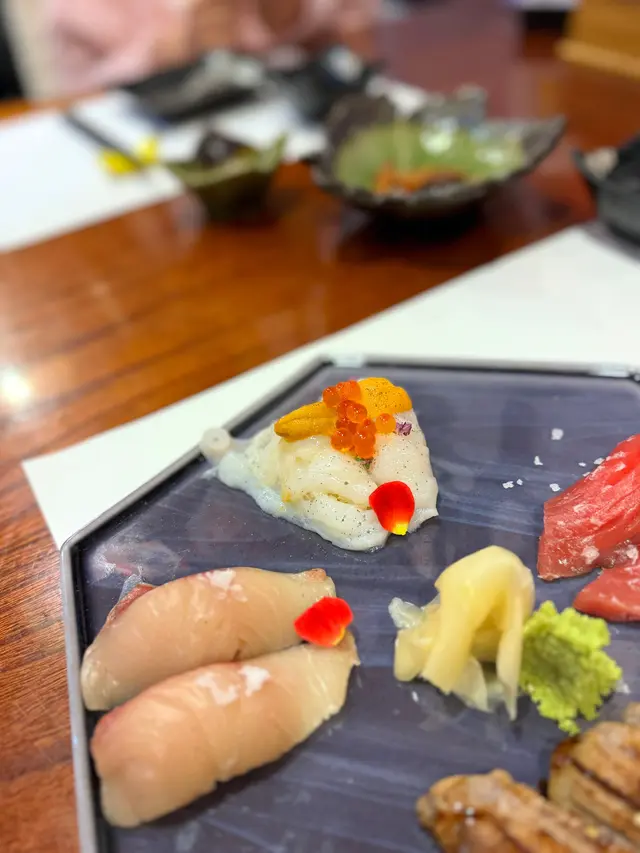 刺身有三文魚、帆立貝、油甘魚、響螺、赤貝、甜蝦、魷魚、大拖羅同埋劍魚腩,刺身都好新鮮,劍魚腩肉質細膩,口感嫩滑厚實,大拖羅油脂甘香,入口即溶,響螺味道脆嫩、鮮甜,赤貝肉質爽厚。
