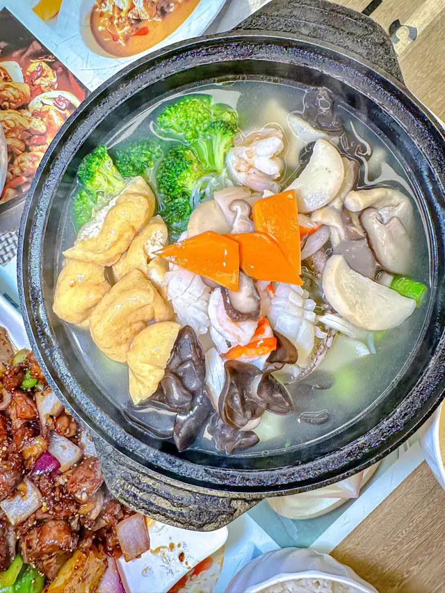 蝦🦐、魷魚🦑、蟹柳、雜菌、木耳、大量蔬菜、