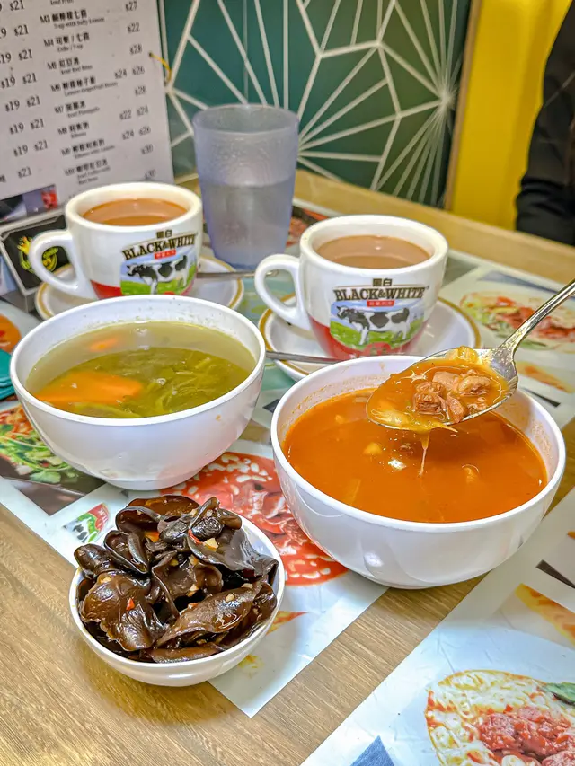 例湯(是日喺西洋菜湯)或者西式湯(羅宋湯)+絲苗白飯兩碗🍚+熱飲兩杯☕️,即喺平均每碟餸只喺大約$60🤣