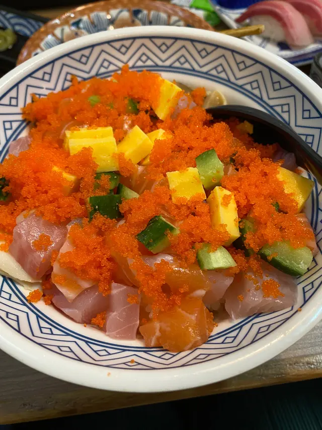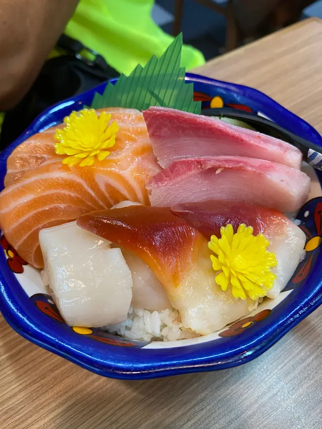 首先上嚟嘅係自選4款刺身丼,入面有壽司醋飯、三文魚(2件)、油甘魚(2件)、帶子同北寄貝。醋飯煮得剛剛好,酸酸甜甜,搭配上新鮮嘅刺身,真係一個完美嘅組合!三文魚肉質滑嫩,鮮甜可口,油甘魚則更加豐富,肉質厚實,吃落去超滿足。帶子新鮮,質感滑潤,北寄貝更加驚喜,海味十足,食完真係意猶未盡!
