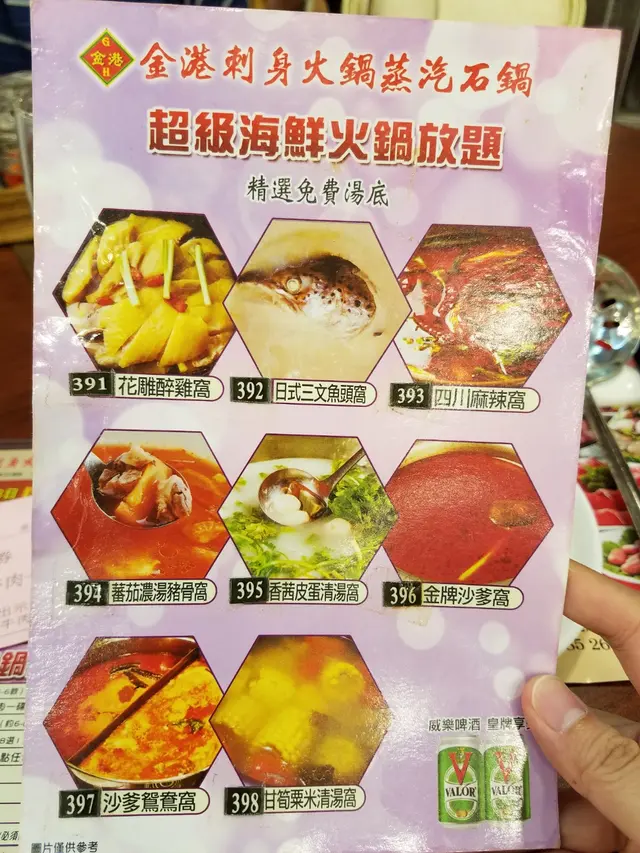 谷友力推的打邊爐 六重菇菇等级42017-09-05455 瀏覽 關注 面書谷日日都有人推呢間野,有現金券又有折,仲要安格斯牛任食,講到咁正就梗係要食啦。湯底揀左鴛鴦鍋,係沙嗲併清湯,無得揀其他,ok啦,貪心想食多個湯底啫。入座即送海鮮盤同刺身,海鮮極新鮮,聖子,蚌,蠔,蜆,班,樣樣都正,可惜唔係無限fill,如果唔係淨係食海鮮都夠啦,呵呵呵。刺身可有可無,唔係特別出色,不過湯底未滾都有啲野食下咁都幾好。火鍋料就都係個啲野,勝在落單即黎,同樣樣份量少少,唔怕一下就飽左。個豬紅,豬腩肉都好正,仲有鮮腐皮,手打牛丸又正,其他丸丸餃餃都唔錯。啤酒汽水都飲左半打,仲食埋雪糕,飽到爆啦!!以上食評乃用戶個人意見 , 並不代表OpenRice之觀點。讚好分享谷友力推的打邊爐 金港海鮮酒家 https://s.openrice.com/QrLT0ZRSh00檢舉 張貼 評分5味道5環境5服務5衛生5抵食用餐日期2017-09-03等候時間10 分鐘 (堂食)人均消費$250 (晚餐)