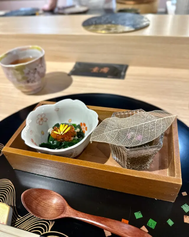 前菜係水雲醋同埋三文魚籽菠菜,兩款都幾清新。