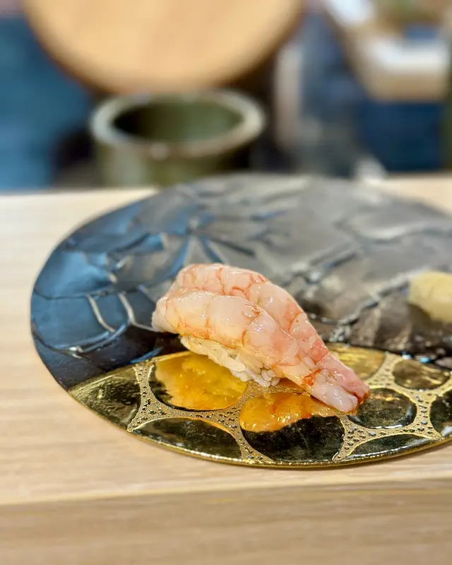 甜蝦壽司用上蝦頭膏醬油調味, 入口食得到好新鮮,而蝦身甜度充斥住口腔。
