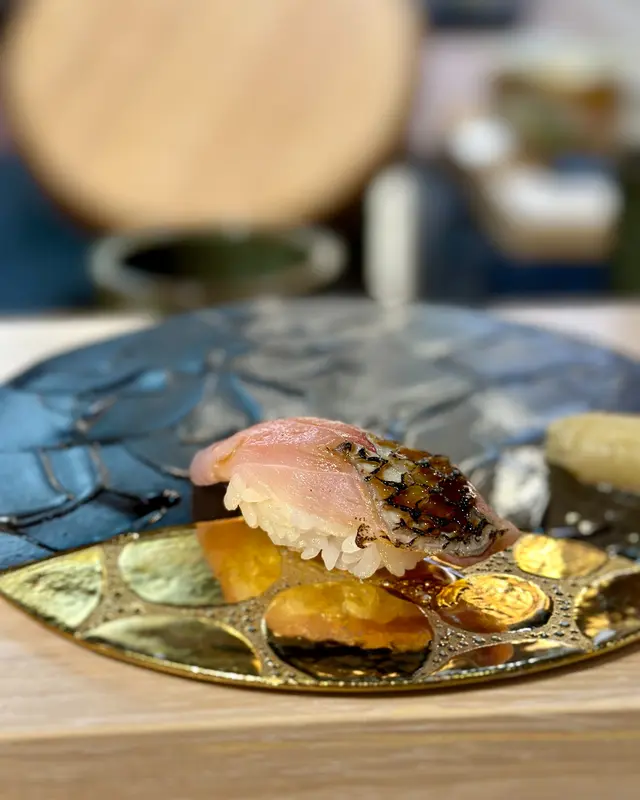 黑鯥魚壽司同其他魚肉不太一樣,肉身口感有彈性,魚皮有嚼勁。