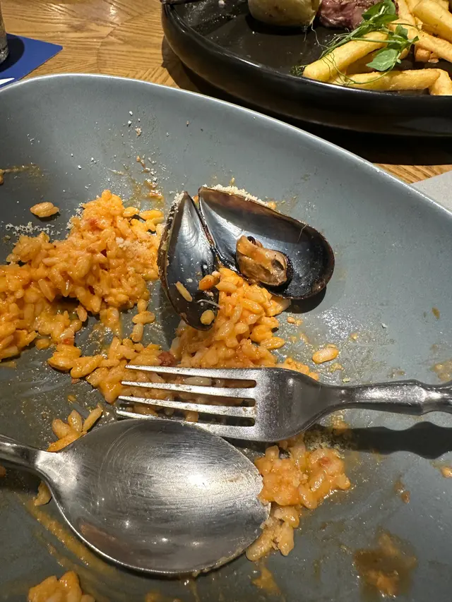 先講講個海鮮飯,成個飯得啲汁好食,入面得三隻青口,仲要其中一個得個殼,冇肉😮‍💨然後啲飯好似未煮熟咁,勁生勁硬。份量又細,一個細胃口嘅人食應該都只係啱啱好。