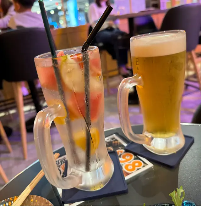 除咗冰雜果燒酎外,另有西柚燒酎、鮮橙燒酎、檸檬燒酎,所以以為雜果會係士多啤梨、藍莓、蘋果等比較甜嘅生果,但呢杯燒酎係將其餘幾款燒酎嘅生果放埋一齊,即係橙、西柚、檸檬入同一杯燒酎入面。