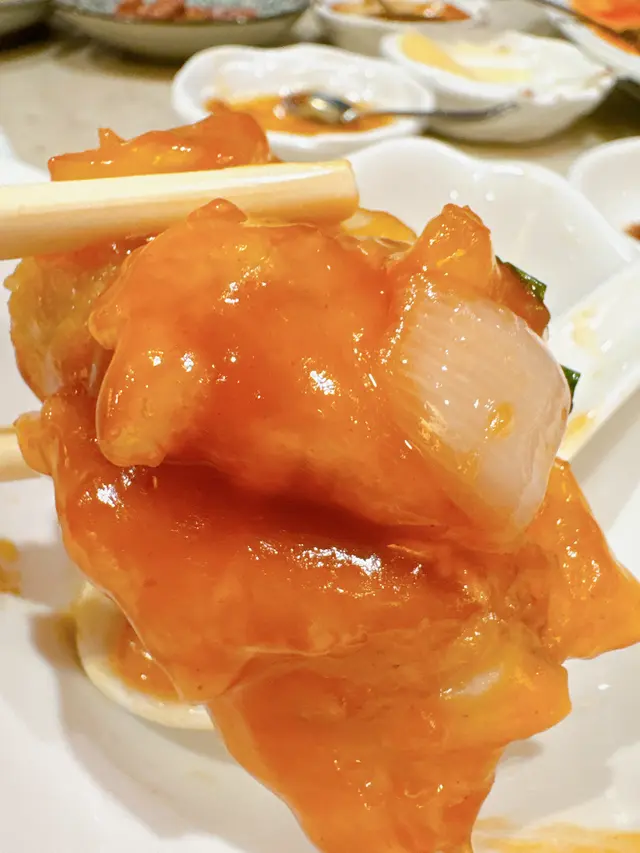 接下來,一道風味松子魚引起了我的興趣。魚肉鮮嫩多汁,伴隨著松子的香氣,口感豐富而有層次。松子的香氣與魚肉的鮮美相融合,帶來獨特的風味體驗。每一口都彷彿在舌尖上跳躍,帶來一種令人陶醉的美味感受。