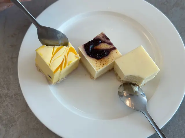 蛋糕分別是芝士蛋糕、藍莓芝士蛋糕及香芒芝士蛋糕,每樣亦份量不多,很適合選擇困難又吃得不多的女士們。整體芝士味道甜而不膩,口感軟滑。相比帶有香芒香甜跟藍莓莓果甜,我個人更喜歡經典芝士蛋糕。
