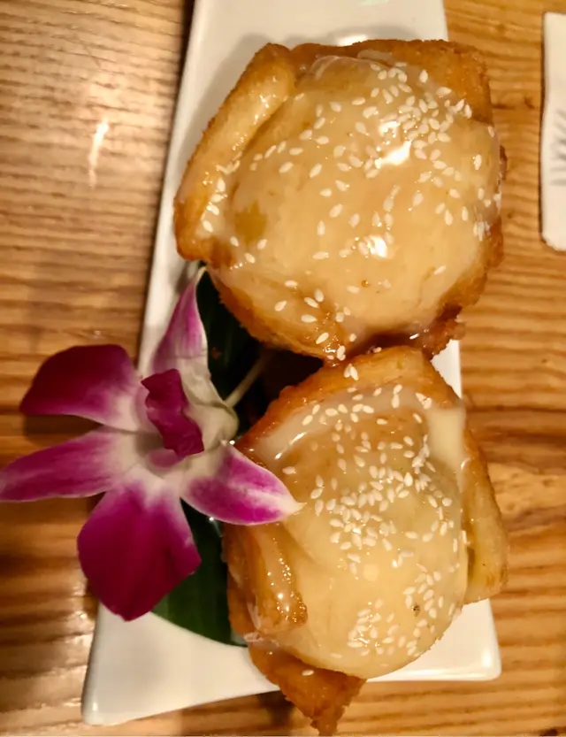 超值推介:炸榴槤雪糕 takeiteasygal等级32019-10-12151 浏览 关注 我地叫了鮮蝦柚子沙律, 青咖喱雜菜連薄餅和Pad Thai. 因為掛住食, 除了柚子沙律, 其他都唔記得影相. 所以本來都唔諗住寫食評. 不過, 食完正餐, 好似點都要叫啲甜野, 所以好隨意咁叫左佢既炸榴槤雪糕, 點知我地一見到個榴槤雪糕, 就嘩嘩聲! 跟住當然係相機食先啦! 佢比想像中大個, 同埋榴槤味好香! 要推介一下俾鍾意食榴槤既人!登登登登!炸榴槤雪糕!佢個底應該係toast, 中間係榴槤雪糕, 然後面嗰層係脆既, 我唔係好知係咩. 😂😂😂 不過好好食!!! 以上食记乃用户个人意见 , 并不代表OpenRice之观点。赞好分享超值推介:炸榴槤雪糕 Siam 28 https://s.openrice.com/QrLT0eMis00检举 张贴 评分5味道5环境5服务5卫生5抵食用餐途径堂食人均消费$240