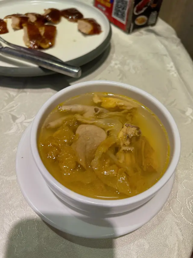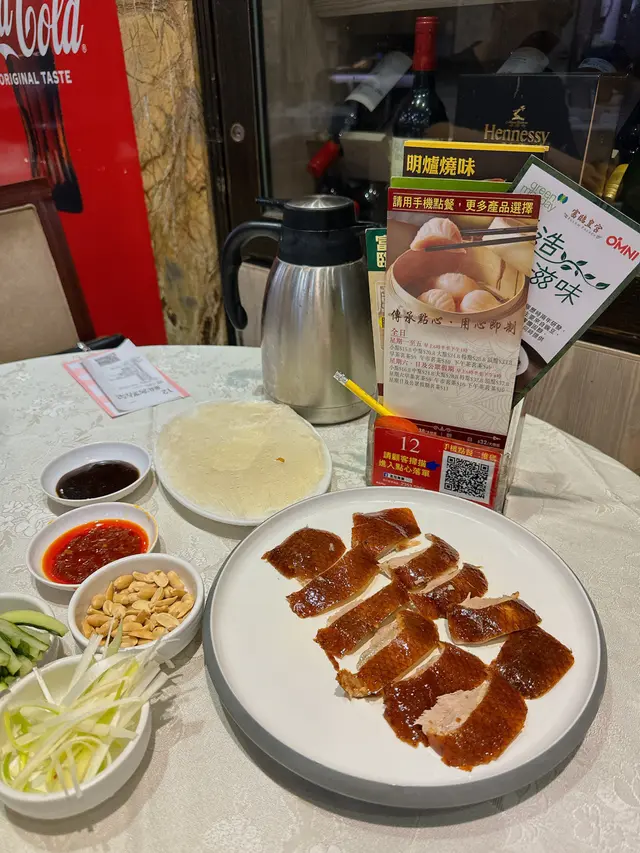 1。片皮鴨 ,烤得香脆的外皮配以不同的特色佐料及薄餅皮即成人間美味,吃了一口還想第二口,而且一點都不膩[调皮][调皮]!2。開胃小菜,3。燒味,4。香口炸物,5。主食,6。甜品🍮,吃過了他們家的甜品黃金糕,軟軟糯糯口感超好!7。百威啤酒🍻汽水🥤任飲!