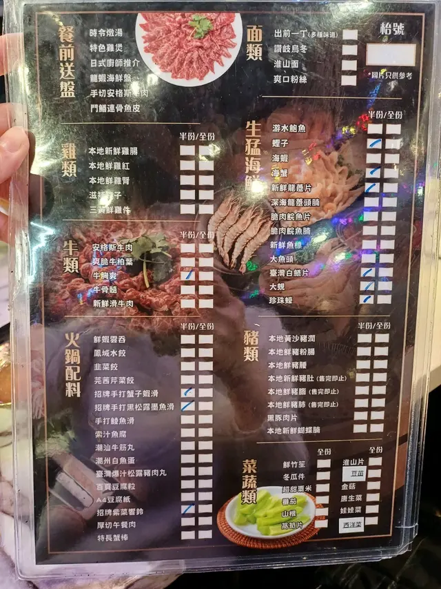 餐牌過了膠,食物種類非常多,任點任畫,厚切龍躉/白鱔都可以任食,他不怕你吃,最怕你吃不了,這說的就是我們,我們點了一輪就陣亡了😅😂,太多好吃的都吃不下,下次要多約朋友來,就可以吃更多種類了。