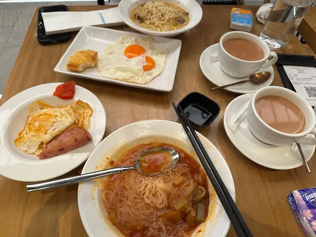 我就食羅宋湯餐蛋米粉,一上餐已經o咗嘴。煎熟蛋同午餐肉全部擺喺湯入面,連多一個碟都唔肯,係我request要一個碗,自己分開。煎熟蛋就費事講了,午餐肉又係基本煎一秒就攞起身,入面係似直接食罐頭午餐肉😊😊個米粉就熟到爛,熟到係我90歲阿爺唔使咬都可以吞落去😊😊最可笑係,米粉就係水味,湯就係湯加茄膏味,0羅宋湯味。湯入面啲配菜更好笑,似浸喺醋入面10世,酸到極點。啲嘢完全係一啲都唔match,mix埋一齊:水味湯底個水味米粉配酸死嘅配菜。