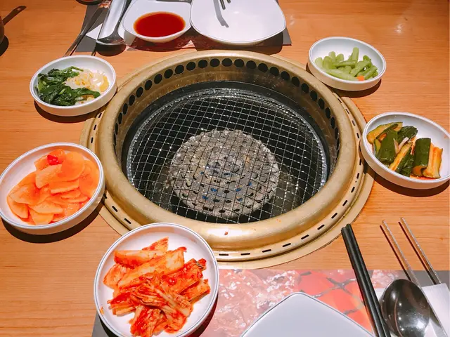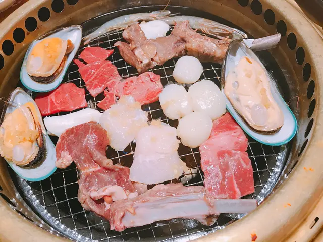 燒好的肉和海鮮,可以用生菜包住食,加上面豉醬,蒜頭,辣椒,泡菜,混合一起食,絕配