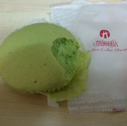我由細細個開始已經好鍾意食山崎既日式雲呢拿蒸蛋糕~~但屋企同埋做野附近都冇山崎, 所以都好少買到黎食. 早幾日經過屋企樓下麵包店 凱施, 本來想夾個麵包, 但比我見到有個類似山崎既蒸蛋糕, 叫做芙蓉蛋糕! 有幾款味: 雲呢拿, 朱古力, 黑芝麻, 同埋綠茶味, 於是買左個綠茶味芙蓉蛋糕嚟食當下午茶! 呢個芙蓉蛋糕比山崎果款竟然仲要鬆軟!! 鬆軟到好似一個棉花小圓球