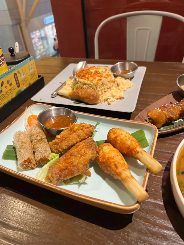 🌸越南風情🏮🏮打卡越南菜😋😋 kokofoodsharing等级32024-06-03788 浏览 关注 自從年初到訪越南旅之後,一直對美味的越南菜念念不忘🥹銅鑼灣這間餐廳裝修超有越南風味,漫天燈籠🥺酸甜湯配法包🥖🍅必點😼越南法南出名好吃,用這個來蘸上酸酸甜甜的湯,超開胃!小食方面推介豬腩串燒,肥瘦相間,醬汁酸辣惹味,而且超大串😹2-3人點一串都足夠。鮮芒芭菲也很不錯🥭滿滿的鮮芒果肉、椰汁奶蓋,𥚃面還有蜂蜜蛋糕、麻糬😳😳值得一試!其他食物水準正常,春卷可以一試,外皮很酥脆,雞翼就稍為油膩。鮮芒芭菲 $98大叻特色手打肉丸酸甜湯配法包 $88豬肉BB蝦炒碎米飯伴春卷甘蔗豬串 $128特式越南豬腩串燒 $58小食自選拼盤 (3-5款)$1721以上食记乃用户个人意见 , 并不代表OpenRice之观点。赞好分享Lúa https://s.openrice.com/QrLT0CTfJ00检举 张贴 评分4味道5环境4服务5卫生4抵食用餐途径堂食