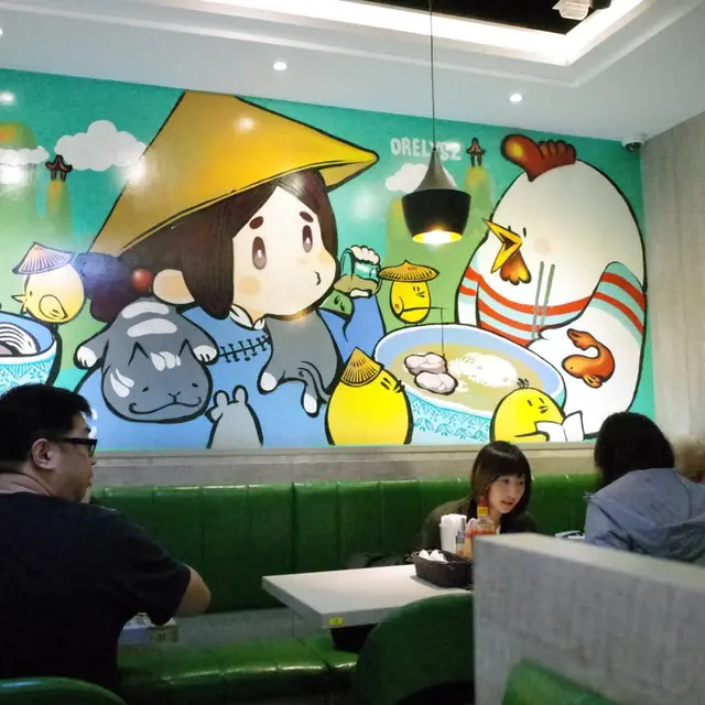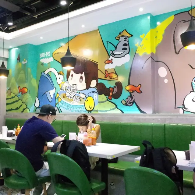 牆上的可愛的壁畫🖍,與另一邊的牆身顏色上互相呼應🌈,讓人眼前一亮🤩。