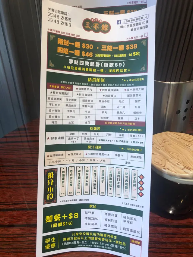 有趣的是: 平日時段,凡著校服及用功讀書的學生,惠顧三餸麵以上送飲品。