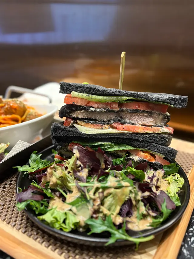 ▪自家製炸黑炭包豬排三文治配雜菜沙律 $92