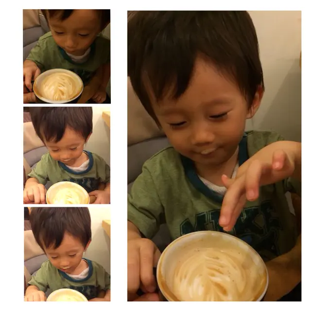 我既baby也被美麗既拉花咖啡吸引之下,淺賞一口拉花咖啡!