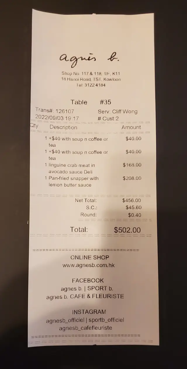 是次晚餐,二人共$502.