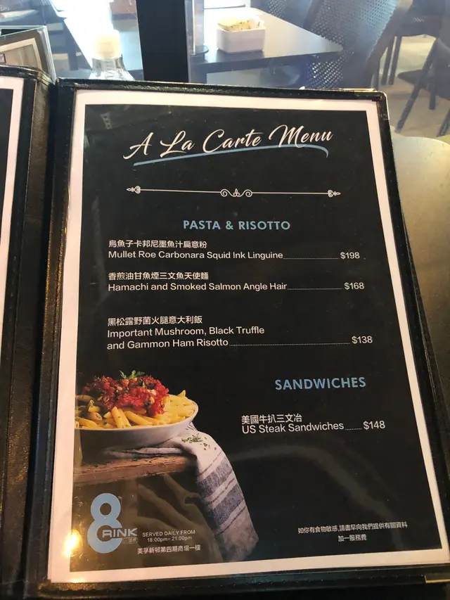 🦑烏魚子卡邦尼墨魚汁扁意粉 $198