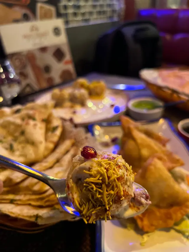 超大驚喜🌟🌟我知道佢係出名既印度小食,但我從末試過,一試立即愛上💕一個炸左既波波球入面有薯蓉?咖哩汁?其實我真係唔知有咩,只係知好好食~面頭有脆米米同石榴粒加好多好多乳酪,外凍內暖,一粒啪入口真係好到痴線🥹
