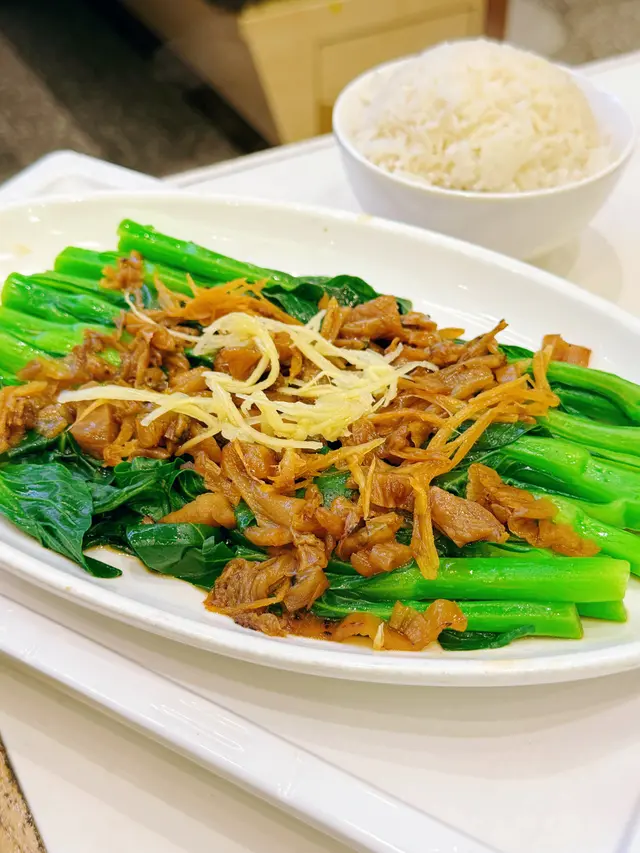 菜心爽脆、梅菜甘香,加入少量薑絲,帶出層次感,平凡嘅菜心都覺得特別好味。