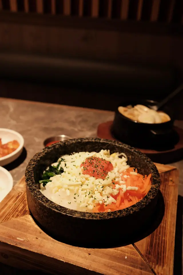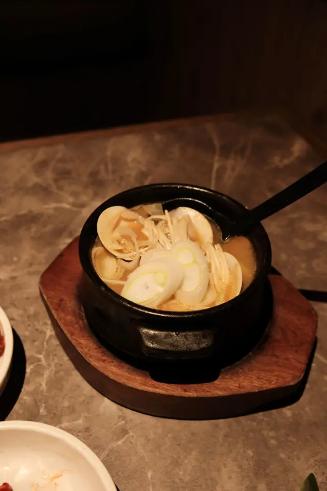 除咗燒烤,我哋仲叫咗個「芝士明太子石頭鍋飯」,啲飯焦香脆,配埋濃郁嘅芝士同鹹香嘅明太子,真係好惹味!每一啖都充滿驚喜😍 「大醬湯」都好足料,有蜆、牛肉同蔬菜,味道好濃郁,飲完暖笠笠!啲蜆仲好鮮甜!