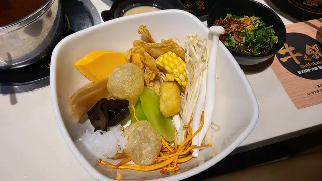 除咗頭先所講嘅肉類之外,呢度仲有一個大雪櫃比客人揀一啲蔬菜、菇菌類、豆類,麵食等材料。