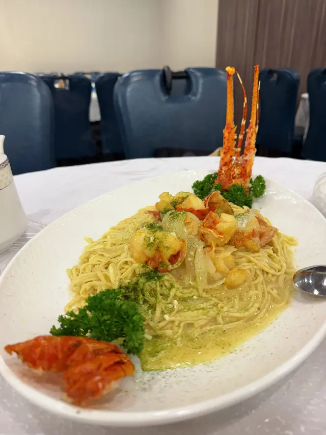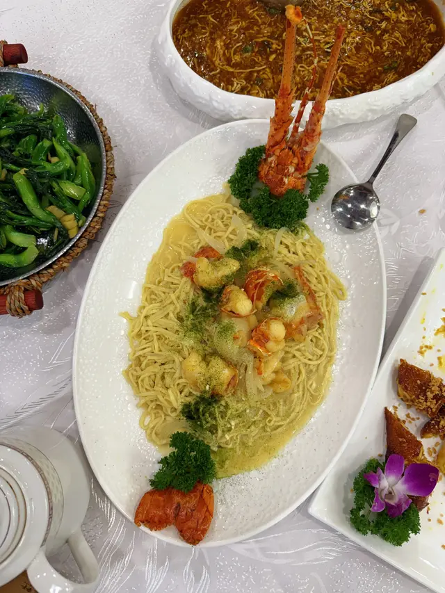 🍤 龍蝦伊麵:龍蝦鮮味十足,肉質新鮮彈牙,醬汁不油膩,完美融合海鮮鮮甜與粵菜精華 👍